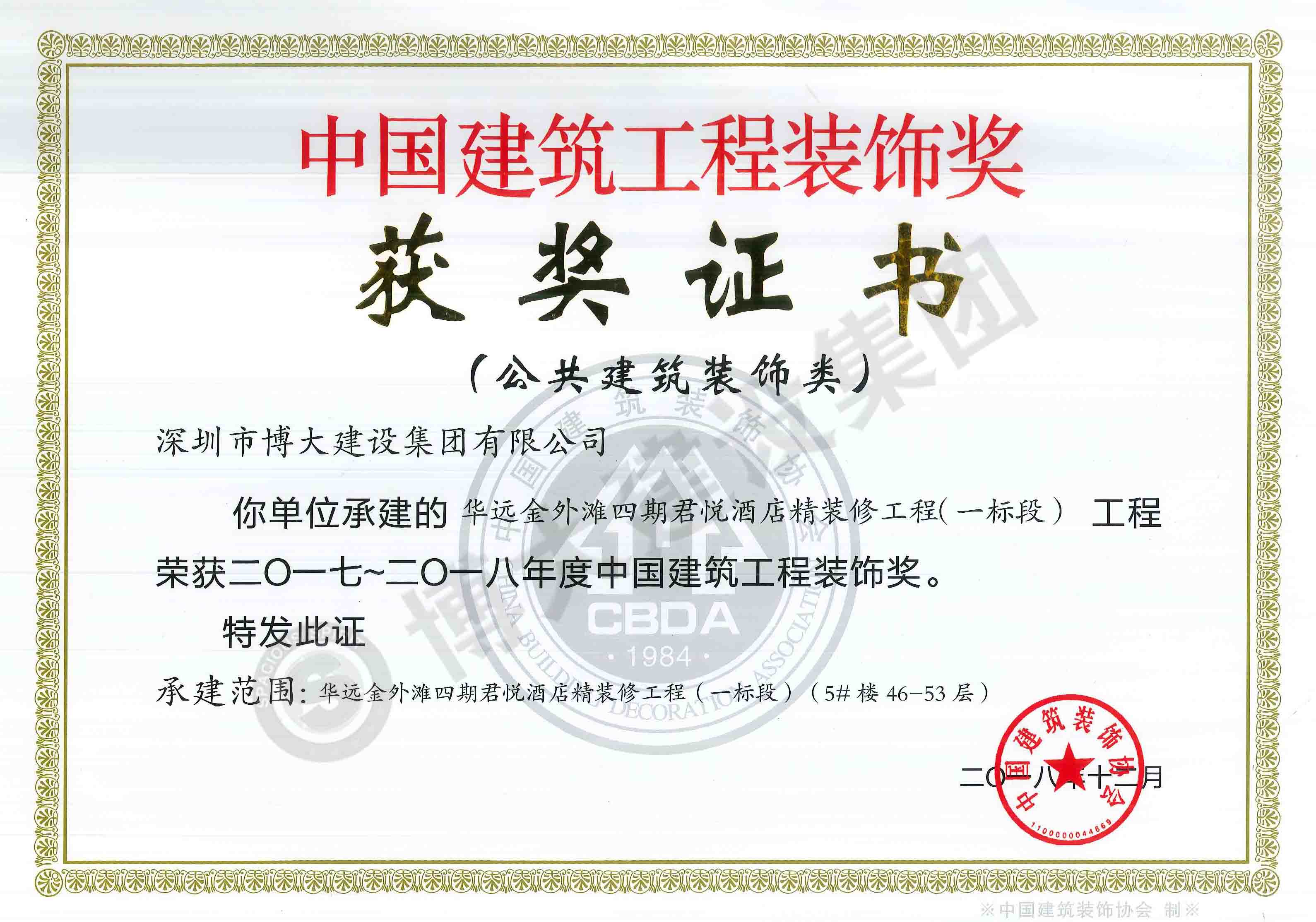 中國建筑工程裝飾獎(華遠金外灘君悅酒店-裝飾)