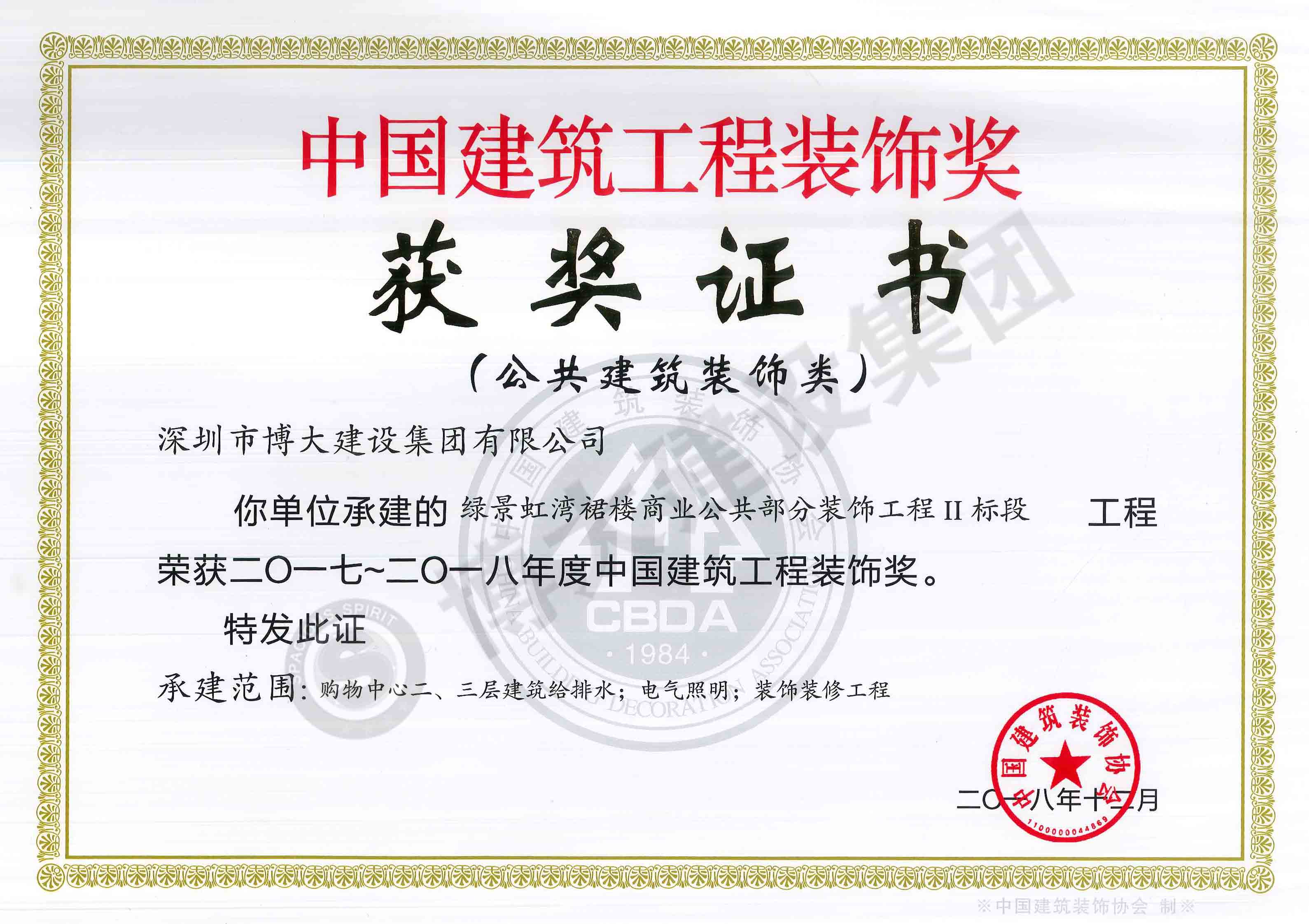 中國建筑工程裝飾獎(綠景虹灣裙樓商業公共部分-裝飾)