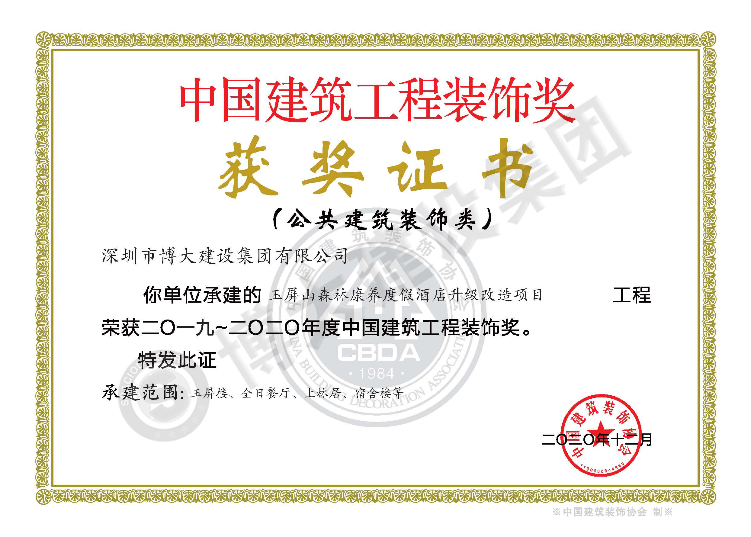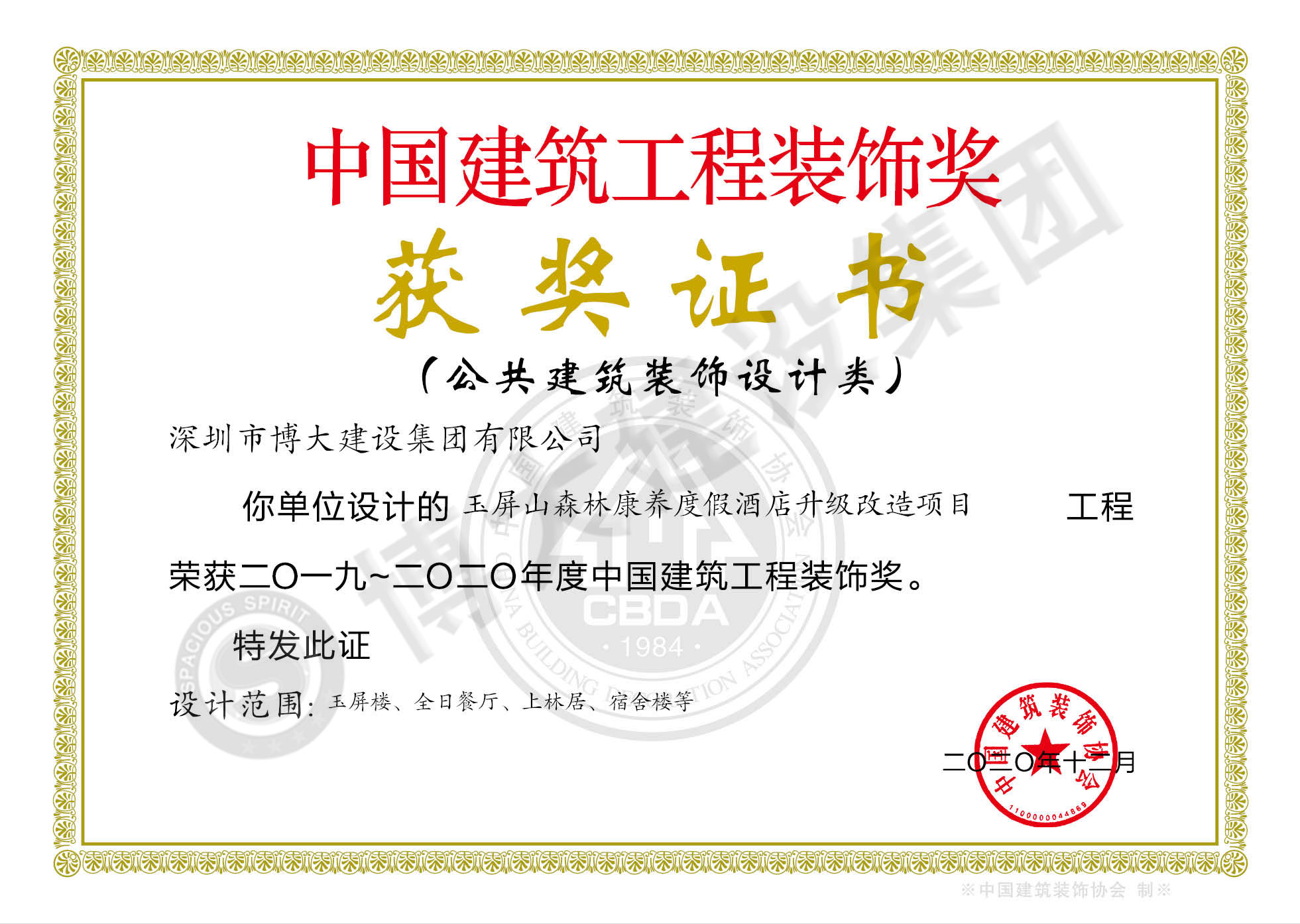 中國建筑工程裝飾獎(四川玉屏山康養度假酒店裝飾施工)