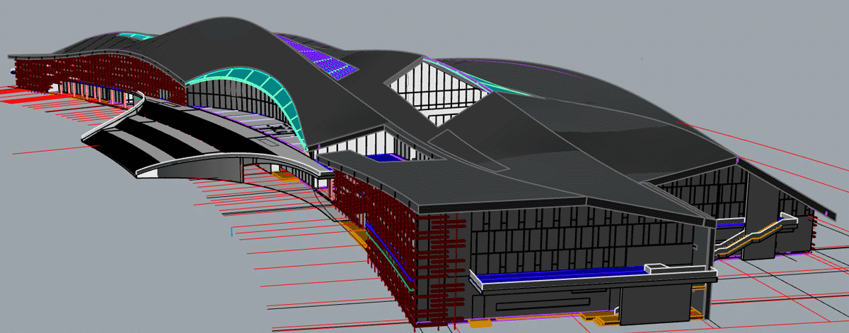 本工程結(jié)構(gòu)設(shè)計造型較復(fù)雜、幕墻體系層次復(fù)雜,博大配備高素質(zhì)的幕墻深化設(shè)計團隊,應(yīng)用三維建模及BIM管理平臺進行幕墻系統(tǒng)空間碰撞檢測,全力保證施工質(zhì)量和效率。
