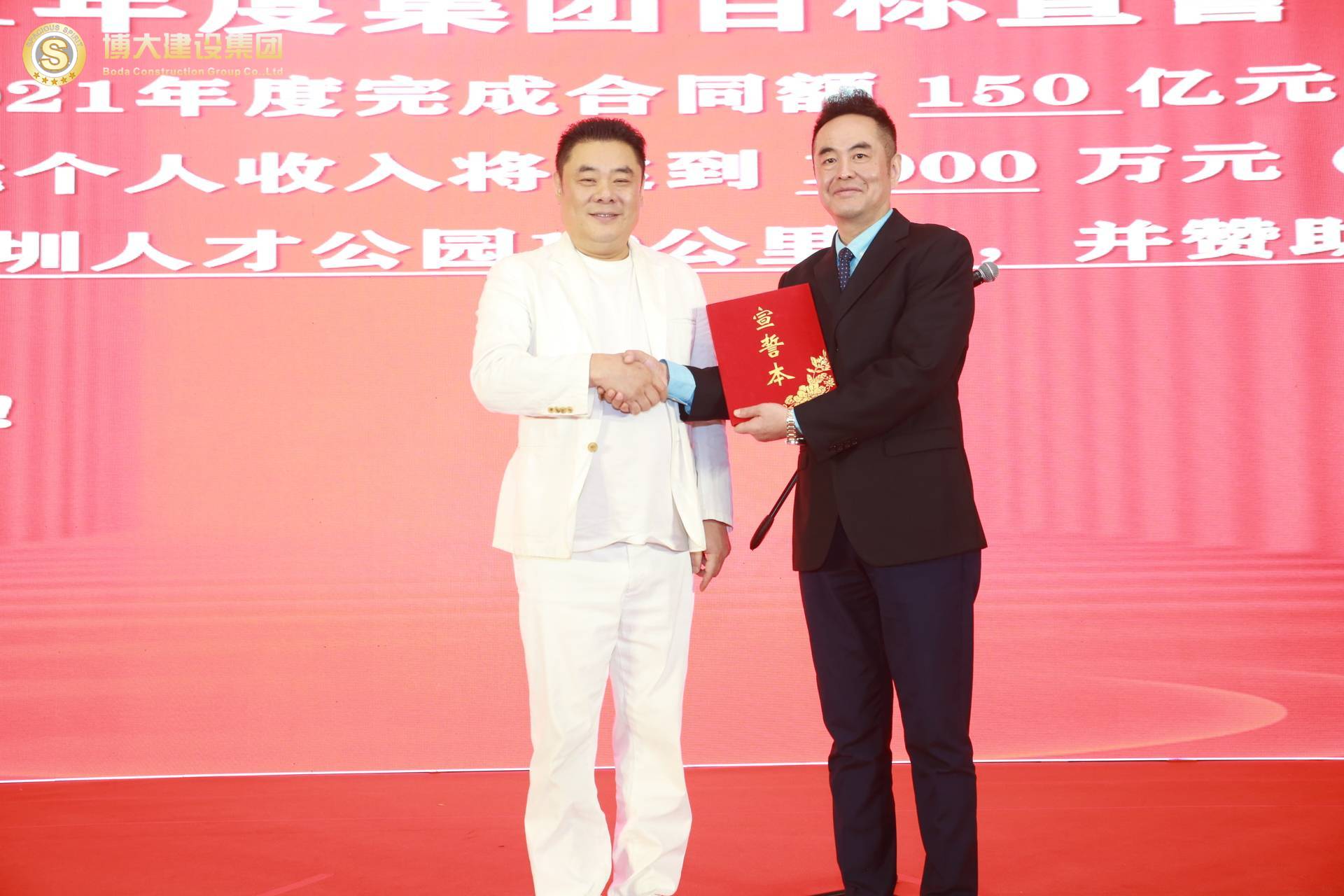 各戰區、中心、工廠負責人逐一上臺,在全體合伙人的見證下對2021年的部門目標和個人收入目標莊嚴宣誓,洪董代表集團對股東宣誓!