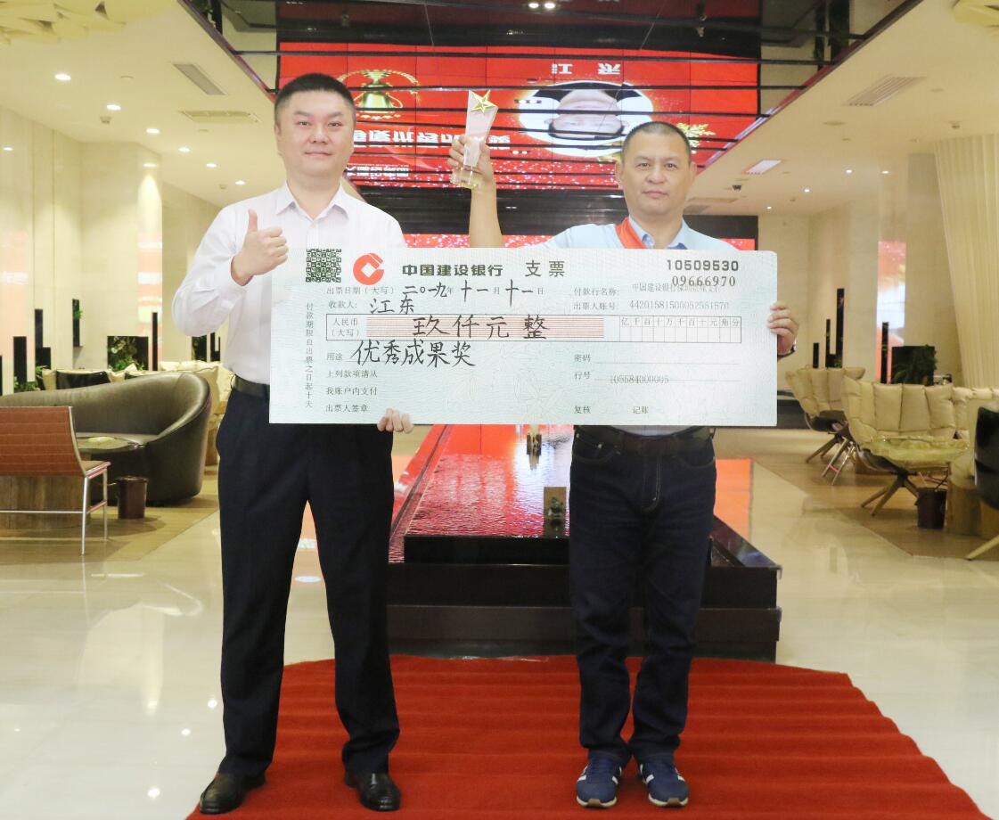 黃河副董事長作為后起之秀,已成為博大新的統帥,帶領鐵軍敢于亮劍、征戰四方,為博大開疆拓土。圖為董事長徐凱宏代表董事會為黃河頒獎。