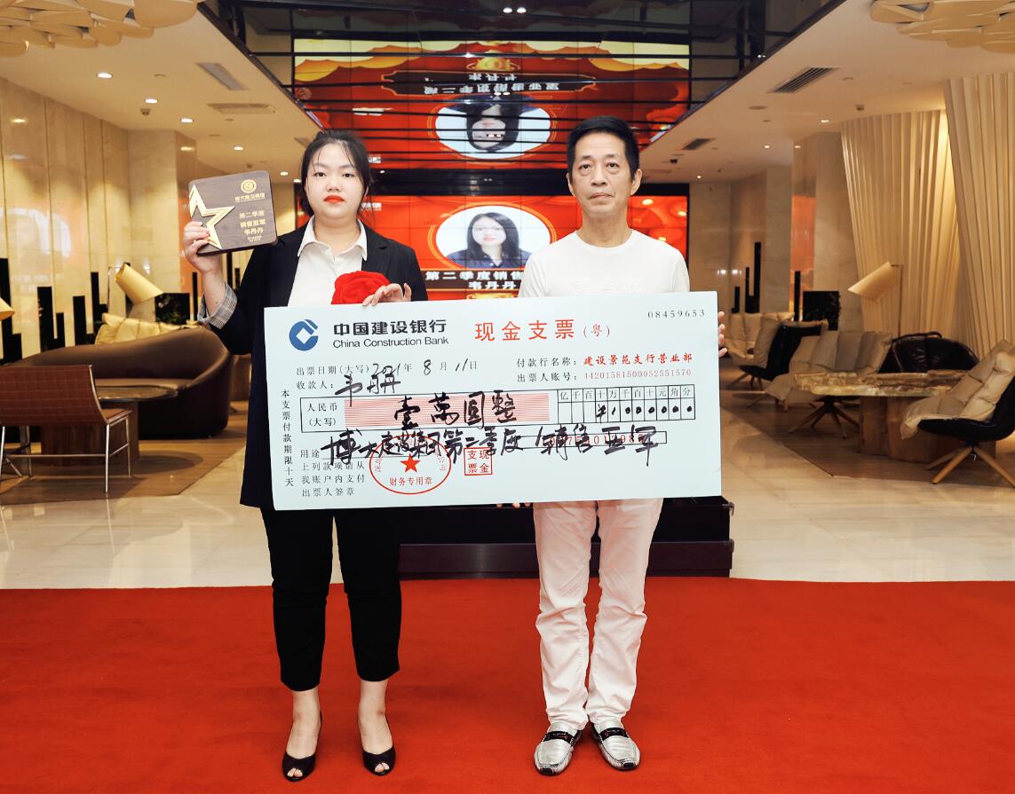 集團(tuán)董事、運(yùn)營總裁黃悠為銷售進(jìn)步獎(jiǎng)獲得者葉繼平頒獎(jiǎng)