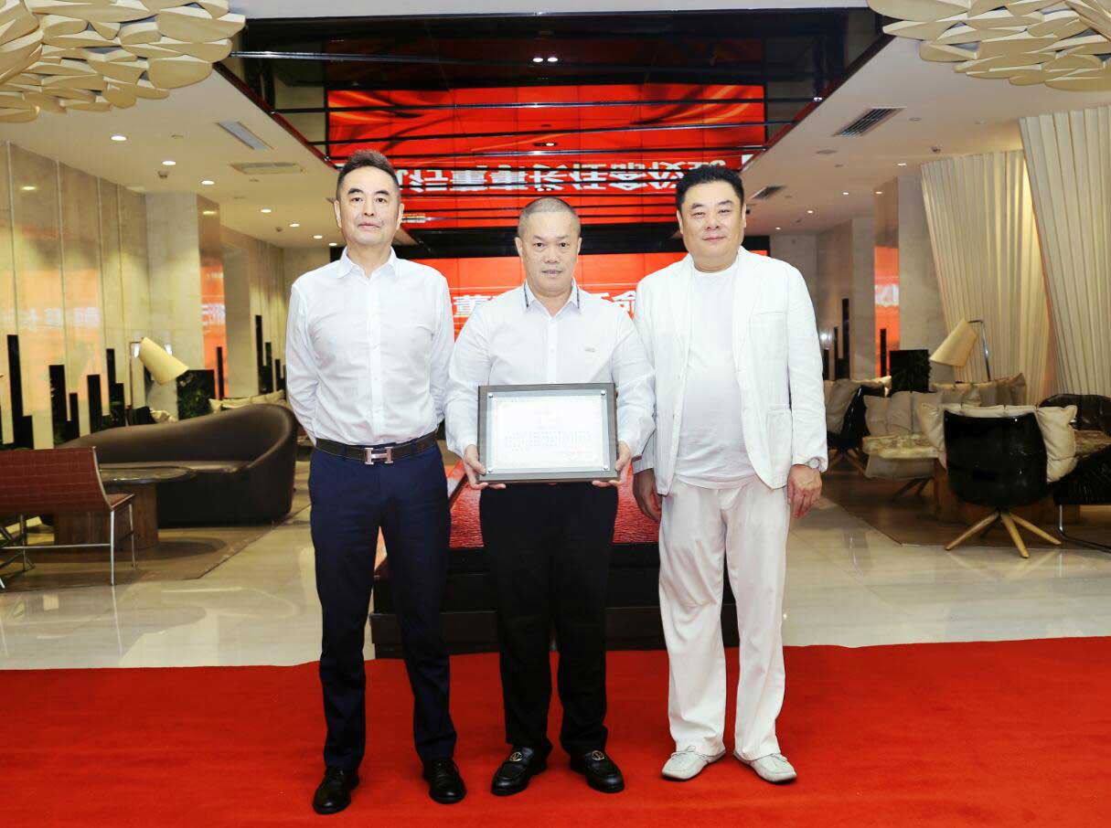 圖 | 創(chuàng)始人徐凱宏、董事長(zhǎng)洪宇共同為張炳來(lái)先生頒發(fā)集團(tuán)董事、執(zhí)行董事長(zhǎng)任命書