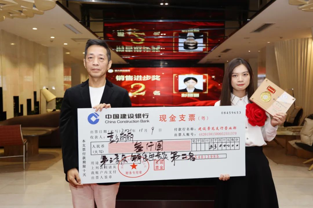 圖 | 集團(tuán)副董事長李朕鴻為彭麗麗頒發(fā)第三季度銷售進(jìn)步獎