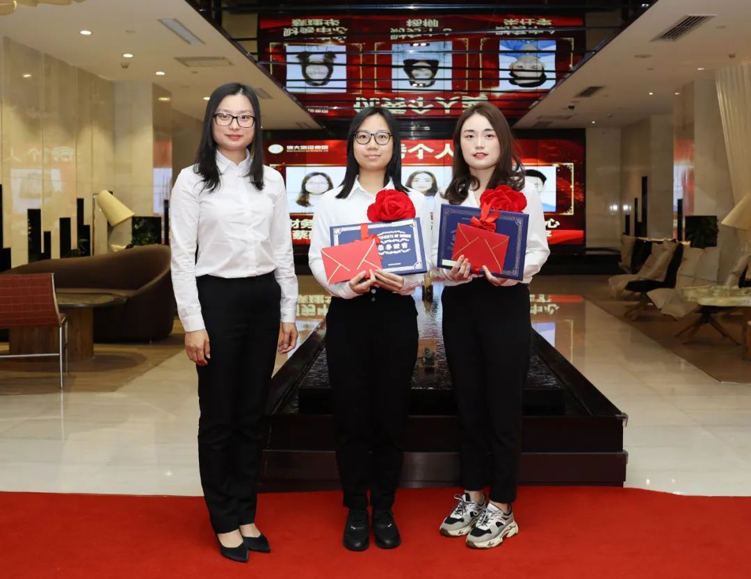 圖 | 集團(tuán)董事、運營總裁黃悠為吳凱、藍(lán)文素頒發(fā)先進(jìn)個人獎